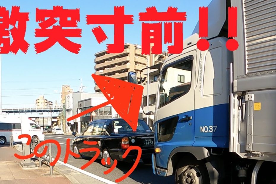 [緊急走行] 救急車が現場から出発の瞬間 危なく停止した前のタクシーに追突しそうになる暴走トラック