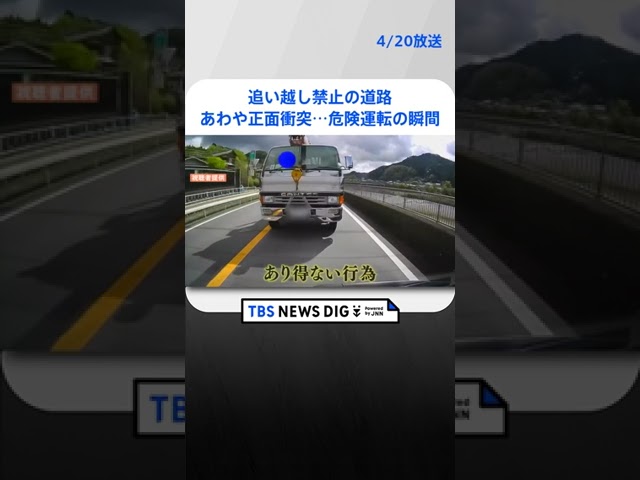 追い越し禁止の道路でトラックがまさかの追い越し!あわや正面衝突…危険な運転の瞬間|TBS NEWS DIG #shorts