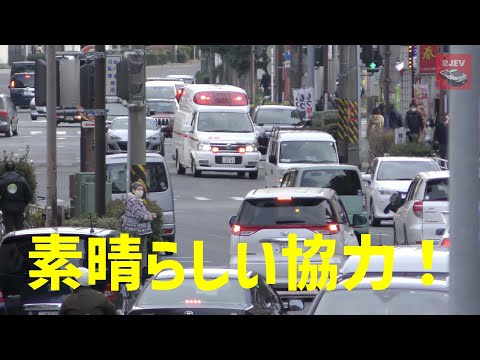 超難所!大きい交差点をスムーズに通過する救急車の緊急走行 素晴らしいドライバーのテクニック